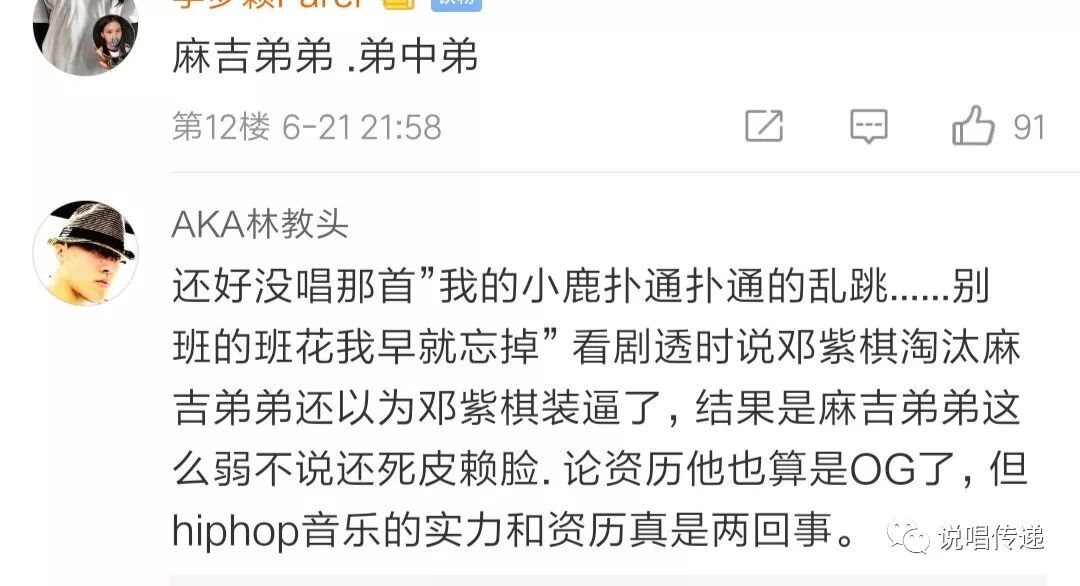 利用他OG的身份造成反差引起轰动,而麻吉弟弟也照着这样做了,我觉得挺不尊重说唱的。麻吉弟弟自己也没有尊重自己和他的歌迷们。