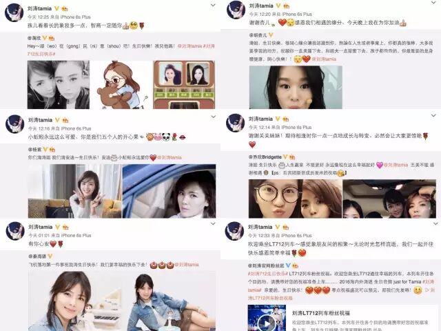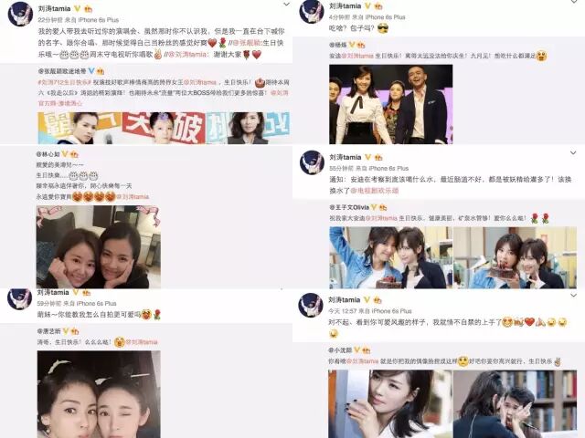 那她自己生日的时候,当然也收获了好友的祝福,这只是刘涛好人缘的不完全统计........