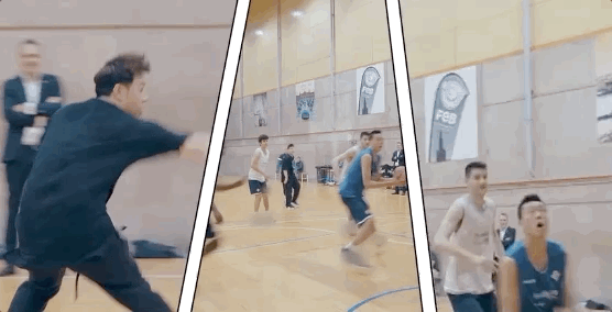 潘帅自认还是有两把刷子,然而走进这个殿堂级训练场,也还是有点紧张。尤其是当看见一群帅气的年轻小伙子争先恐后地投篮,三步上篮、勾手投篮、后仰跳投,花样百出,配上节目组的旋风特效,宛如魂穿灌篮高手的真人版现场。