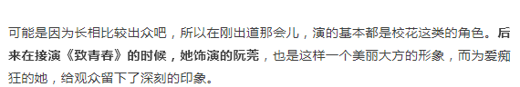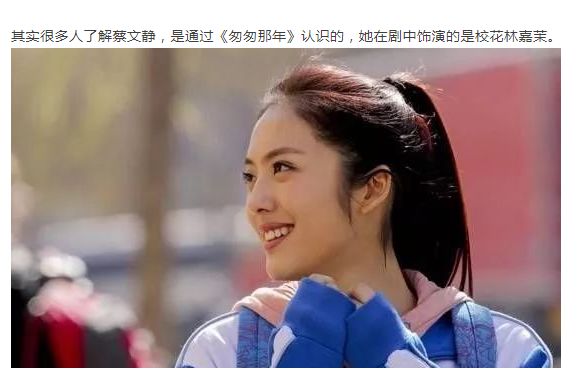 说实话,校花通常都是一个没有观众缘的角色,而且总会被冠以“白莲花”、“绿茶”等头衔,但是蔡文静却把这个校花演的清新脱俗,十分大方,又为人仗义,很受观众喜欢。
