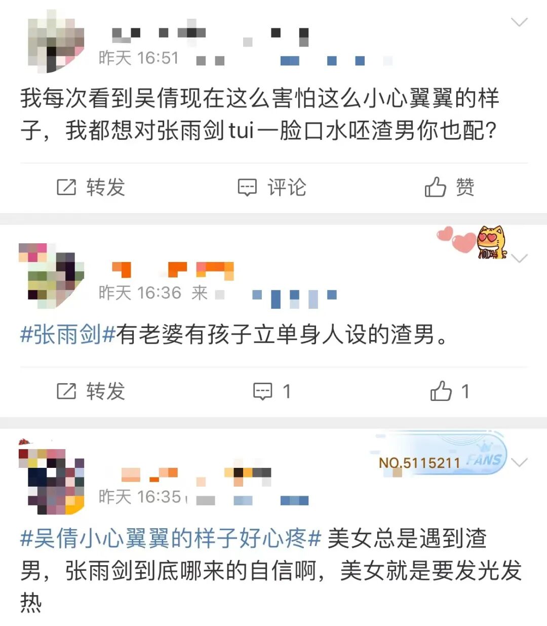 吸血吴倩的渣男前夫,终于等来了报应! 黎兜兜 内地女星 2023-05-12 21:15:57 319 创作不易,用心坚持,欢迎请BaGua喝几杯爱心咖啡!打赏并支持本文 打赏并删除本文 来源 | 七野说ID | qiyeshuoshuo01《浪姐4》开播了,又有一批姐姐开始活跃在公众视线。往年首期节目播出,都会有出圈的舞台和梗。去年,王心凌的《爱你》霸占了半屏热搜。而今年,很多人都在做同一件事:心疼吴倩。大家还记得,曾经的吴倩吗?武大校花出道,颜值耐看,气质灵动。天然又俏皮的长相和气质,放在整个娱乐圈都属于稀有物种。因此,她贡献过不少鬼马精灵的经典角色。《何以笙箫默》的小默笙。《冰糖炖雪梨》的棠雪。《择天记》的妖族公主白落衡。因为演技佳、长相大气,哪怕演女二也能留下经典角色。吴倩一度被当作“小花预备役”培养,在娱乐圈前途大好,甚至被起了“华策(她所签的经纪公司)公主”的外号。但事业巅峰期,她突然消失在公众视野。和张雨剑隐婚生女,作品产出寥寥,八卦新闻却有一箩筐。再度被广泛关注,是因为她在《浪姐4》里,令人心疼的表现。现在的吴倩,变得小心翼翼,极不自信。别的姐姐聊天,她在一边融不进去,尴尬得直眨眼。在镜头前发言,也是拘谨又小心翼翼。说自己对跳舞很不自信,很抗拒。明明她的初舞台相当亮眼,活脱脱的“迪士尼在逃公主”,是不少网友心中的初舞台top1。屏幕前的网友们快急死了:到底是谁说过吴倩跳舞不好看啊?更让人心疼的是选人环节,Ella夸奖吴倩的时候,她满脸都是不可思议的表情。像被伤害过的小动物,下意识做出了紧张的动作,眼神躲闪。好像很不习惯被人肯定。大家都很心疼吴倩,说她以前明明是自信开朗的女孩,现在却眼里无光,举手投足都畏畏缩缩。而且,根据观众剧透,吴倩已经被《浪姐4》淘汰了。大家遗憾得不得了,觉得以吴倩的咖位和实力,不该这么早被淘汰。于是把吴倩变成今天这样的原因,归在了前夫张雨剑身上。他们说:每次看到吴倩躲闪的眼神,我都想刀了张雨剑那个渣男。02吴倩和张雨剑仅存11个月的婚姻,为她带来的伤害,有目共睹。她和张雨剑的恋情,源自拍戏。一部是《盛唐幻夜》,一部是《我只喜欢你》。到第二部时,俩人虽然没官宣,但就差把情侣身份写脸上了。剧里公费恋爱,肆无忌惮地亲,亲,亲。私下的互动超级暧昧,眼神拉丝、偷偷牵手,绝对逾越了普通同事的距离。所以当时《我只喜欢你》播出的时候,大家被甜得糖尿病都快犯了。以为是演员演技到位,没想到是真情侣带薪营业。但俩人一直都捂着恋情不公开,很可能是因为张雨剑不允许。因为他一边谈着恋爱,还在一边营销单身人设。在节目里危险发言,想找女朋友。甚至,按时间推算,吴倩在孕期的时候,张雨剑在综艺里和虞书欣卖cp,十指相扣。在直播时说虞书欣私下给他发消息。吓得虞书欣赶紧解释自己私下和他没瓜葛,生怕惹一身腥。不只撩女搭档,张雨剑还得分出一点精力,营销男男cp(朱正廷你怕了吗)。都快当爹的人了,这样真的合适吗?后来,狗仔们都看不过去了,甩出吴倩和张雨剑孕检的照片,一个接一个料地爆。可张雨剑还是绝口不提结婚的事,嘴比命还硬。最终让他承认结婚生子的契机,也很可笑。吴倩带孩子被狗仔拍到,他只能“认了”。但话里话外都是抱怨甩锅、无能狂怒的情绪。一句好话都不说,甚至连吴倩的名字都不提,全篇都在指责“孩子妈”,给大家演了出“公然训妻”。他的意思是吴倩带娃被拍,是她的失职,还放了句狠话“别有下次了”。但吴倩真的像他说的一样,带娃失职吗?自从吴倩长出“恋爱脑”,几乎完全投身在家庭中。公开表示“想当家庭主妇”。被狗仔拍到带孩子的视频,也是在温柔耐心地逗孩子开心。而且,结婚生子之后,被影响事业的是吴倩。张雨剑该拍戏拍戏,该潇洒潇洒。吴倩却满脸疲态,眼窝凹陷,好不容易演个剧,还被骂“颜值崩塌”。在这段感情里,谁被消耗,谁委屈隐忍,简直不能更明显。2022年情人节,吴倩宣布单身,结束了不到一年的婚姻,成了单身妈妈。她主动晒出和女儿幸福的合影,间接打了张雨剑指责她带娃失职的脸。大家都说,情人节官宣离婚,这得是恨前夫恨成了什么样啊。她被全网祝福,摄影师好友晒出吴倩孕照,祝她单身快乐。笑容一点点回到吴倩的脸上,从她今年开播的《去有风的地方》里也能看到。吴倩的颜值和状态都在回春。网友调侃,张雨剑这个渣男前夫哥,可能是吴倩这辈子最差的作品了。但好在,吴倩有在上升期隐婚生子的勇气,也有大胆转身的潇洒。选错了一个人,不是什么丢人的事。与其心疼吴倩,不如祝福她重新回到女强人的赛道上,好日子还在后头。03吴倩和张嘉倪,是《浪姐4》的“离婚独美组”。同是离婚不久,但她俩的状态,完全不一样。张嘉倪自信大方,美出新境界,被调侃“离婚是女人最好的医美”。她拿出大女主的姿态,安慰不自信的吴倩,在舞台上唱着“在这个宇宙我是独一无二,没人能取代”。那一刻,台下的吴倩,眼里闪过了一丝光亮。想必比起被全网心疼、遗憾,活成张嘉倪自信大方的样子,蜕变重生,才是吴倩真正需要的。我们理解吴倩。在一段不对等、不健康的感情中,是无法照见自己最美好的样子的。甚至会变得焦虑、压抑、自怨自艾。但伤口终会痊愈,这段感情也会成为吴倩成长的契机。我们期待着,未来的吴倩,能成长为自己的大女主。在亲密