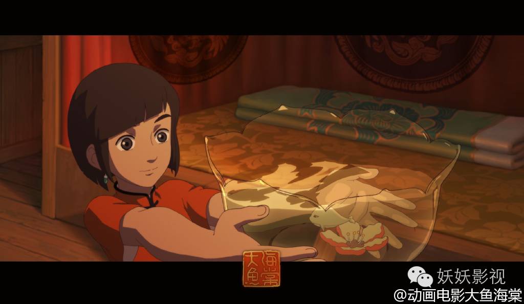 先是画面,虽然比不上画质狂魔新海诚随手截一帧都是高清桌面,也没有宫老爷子作品的清新俊逸,但不得不说《大鱼海棠》的画面制作还是配得上良心二字的,影片中的星空、海洋等大场面的确能给我带来美的享受。