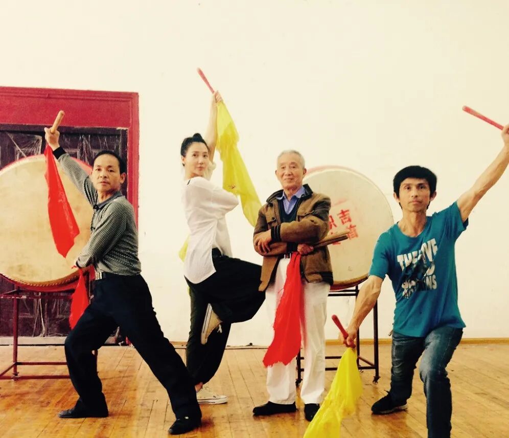 练习苗族鼓的阿朵(左二)
