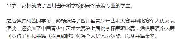 舞蹈让彭杨变得优雅、自信,也让她拥有了出众的气质。