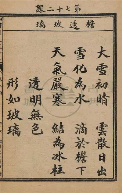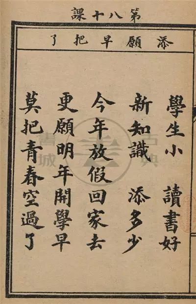 看了一册清末小学国文课本, 看完之后,甚是惊叹! 先说明下,这本是其中的第二册,因为是四年制,相当于现在的一年级下或二年级初。虽然这仅是其中一册,但当时的教育理念依然展露无遗。 知识之外,感受到的是对生活的热爱,对美好的向往,对文化的认同以及对做人的引导,对成为有用之人的期待。 开学第一课,由拜孔子开始。 古语有云:“国将兴,必贵师而重傅”。仪式,有时并不是形式,这是一种虔诚,一种尊重,一种珍视。随随便便的习惯一旦养成,轻浮以待也是早晚的事儿。这里是以实践告诉学生,尊师重道的道理。 第二课,讲清楚其他学习内容。 让学习计划、学习目标变成学习内容,这点很利于学生学习习惯的养成。而习惯的养成,其实对于人的一生都非常重要。人生最怕的就是漫无目的,无所适从。 后面,就是正式开课了。除了识字,你将真切感受到什么是内容丰富,文辞优美,言短而意长…… 认识周围的世界: 理解生存的常识: 明白生活的不易: 明道夫子讲:端正求学的态度 学会人与人之间的相处: 知道做人要有礼有节: 更要知晓国家的意义: 故事,也不可少: 总之,我们的语言,可以述尽世间美丽: 中华的风骨,千年依旧: 最后一课,再次提醒: 对于学生,学习仍是第一要务。 这样的课本,你打几分?