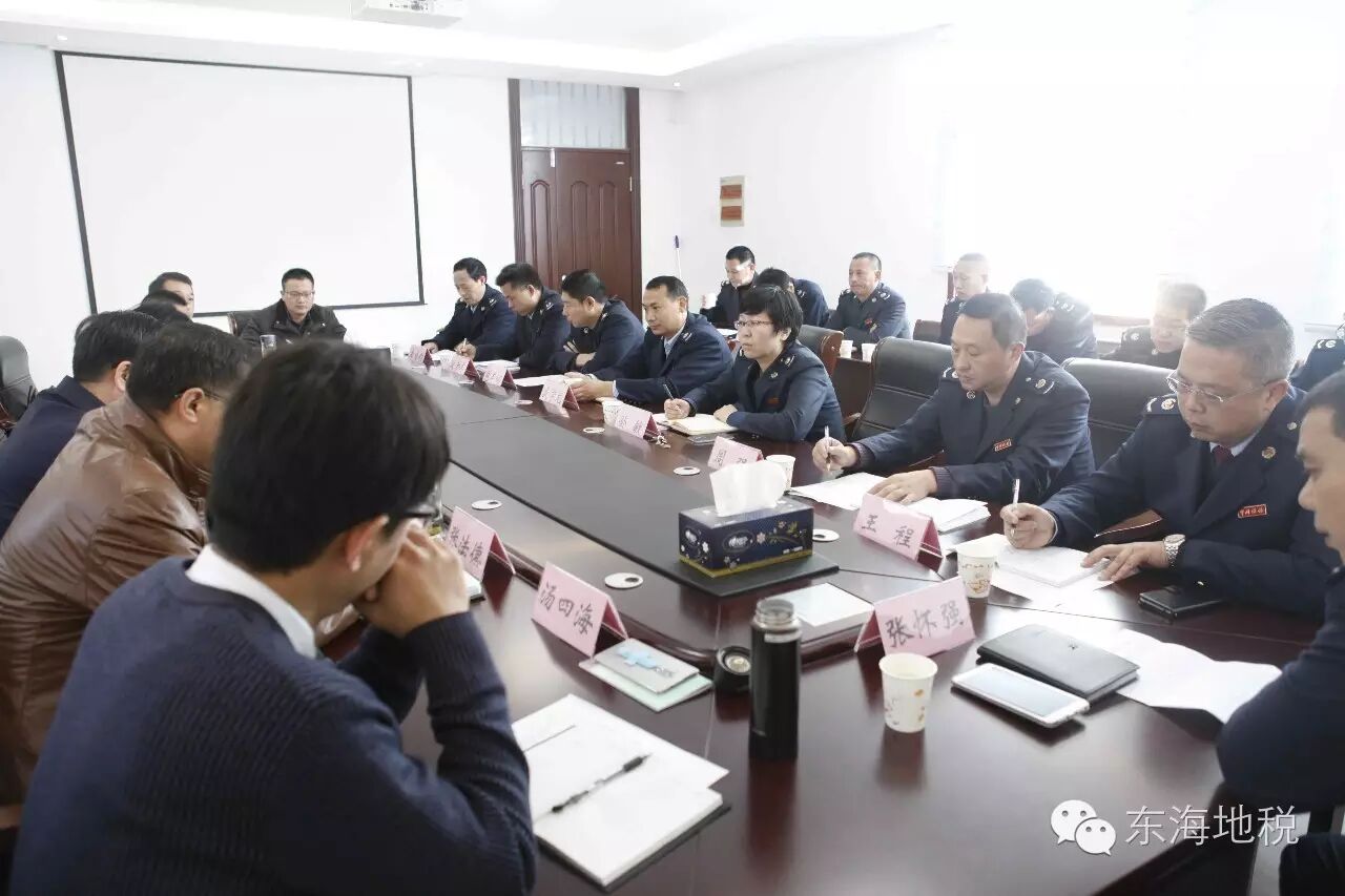 11月17日上午,市地税局党组书记、局长胡军一行赴东海开展调研,副局长武琼、副局长张法德,征管科技处处长孙安剑、数据管理处处长陆岩、规财处处长汤四海、办公室副主任任虎陪同调研。