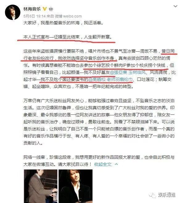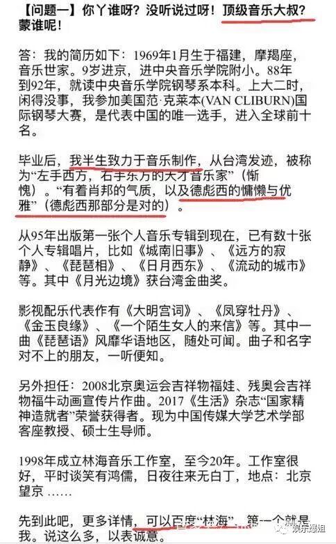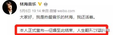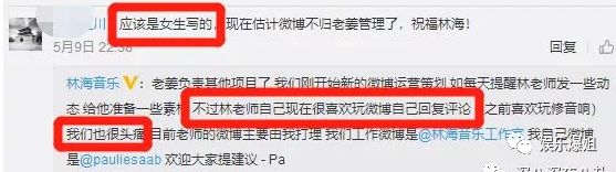 有林海多年的乐迷不相信,怀疑后来不妥当的文字,是他95后的女友写的。结果却被林海亲自回应:是我本人。