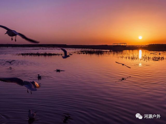 今天早起去看【居延海】日出。当晨光洒在湖面,铺满湖边那一片片芦苇丛中,似乎给她们都镶上了金边,煞是美丽,时不时的鸟儿掠过,更是增添了几分生动活泼。居延海的美在于无论你用什么器材,都可以拍出大片的感觉。澄澈湛蓝的天空搭配橙黄温暖的日出,冷暖色调在这里并不冲突,反而碰撞出美妙的火花。