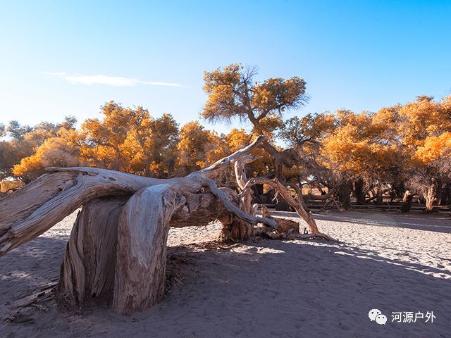 在金秋十月前往额济纳,看最美时辰的胡杨林,秋天的胡杨林,树叶黄的通透,在河边于空中婆娑起舞,那强烈的反差,鲜明的影调,亮丽的色彩,足以令任何语言文字显得苍白无力。而我们将有整整一天时间游赏胡杨林!