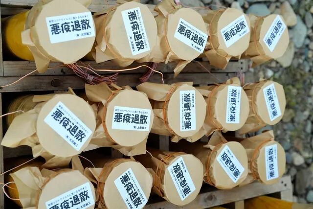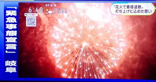 岐阜县有着百年烟花制造史的「村濑烟火」日前在岐阜城边燃放了25发烟花,为了避免市民来现场观看增加感染风险,本次烟花的燃放时间、地点事先都没有公开,而烟花和发射筒盖上则贴有「恶疫退散」的字眼。