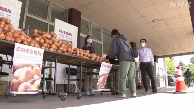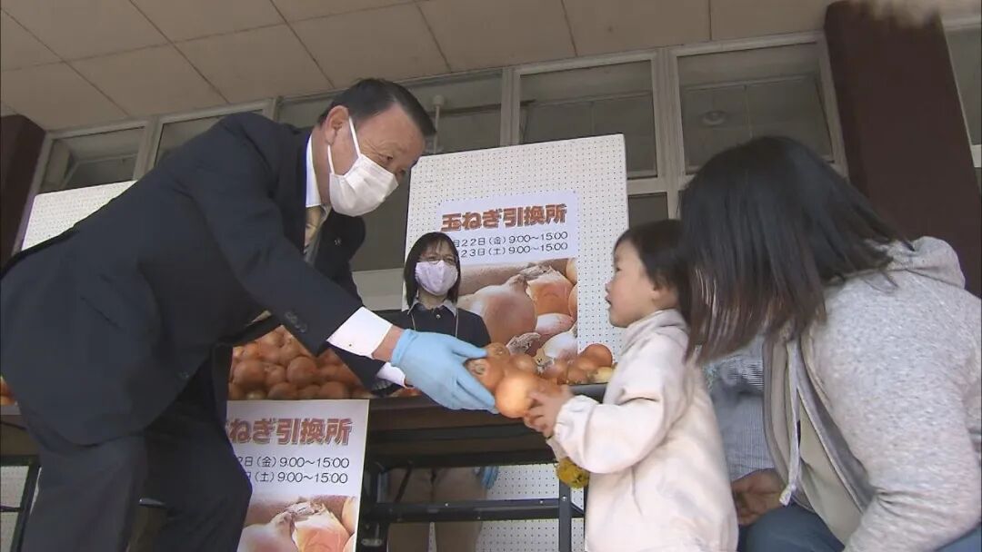 为了避免人员密集,富良野市将分今明两天在全市13个地点设置洋葱发放处,居民可以自行前往领取1公斤洋葱。