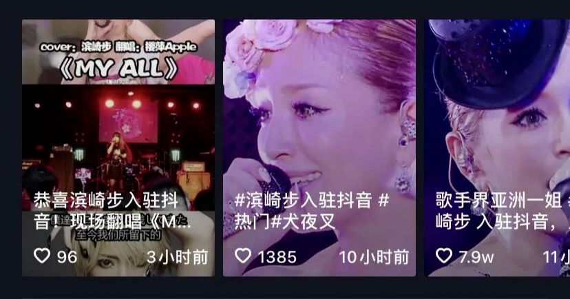 5月8日,日本歌手滨崎步在开设抖音官方账号一个月后,决定将自己全部的122首歌MV在抖音上公开。这是日本艺人史上的首次尝试。