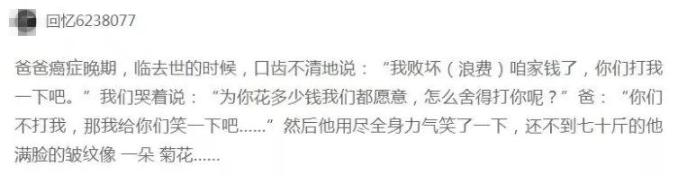 在贴吧看过一个真实的故事,博主的父亲是癌症晚期。