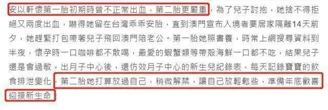 怀第一胎的时候,安以轩就出现过不正常的出血。现年39岁的她怀上二胎已经算高龄产妇,据说出血的情况更加严重。