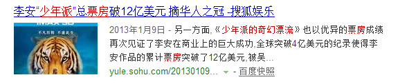 2011年,冯小刚的《一九四二》和李安的《少年派》撞了档期,《少年派》不仅口碑爆棚,还取得了总票房破12亿美元的好成绩。
