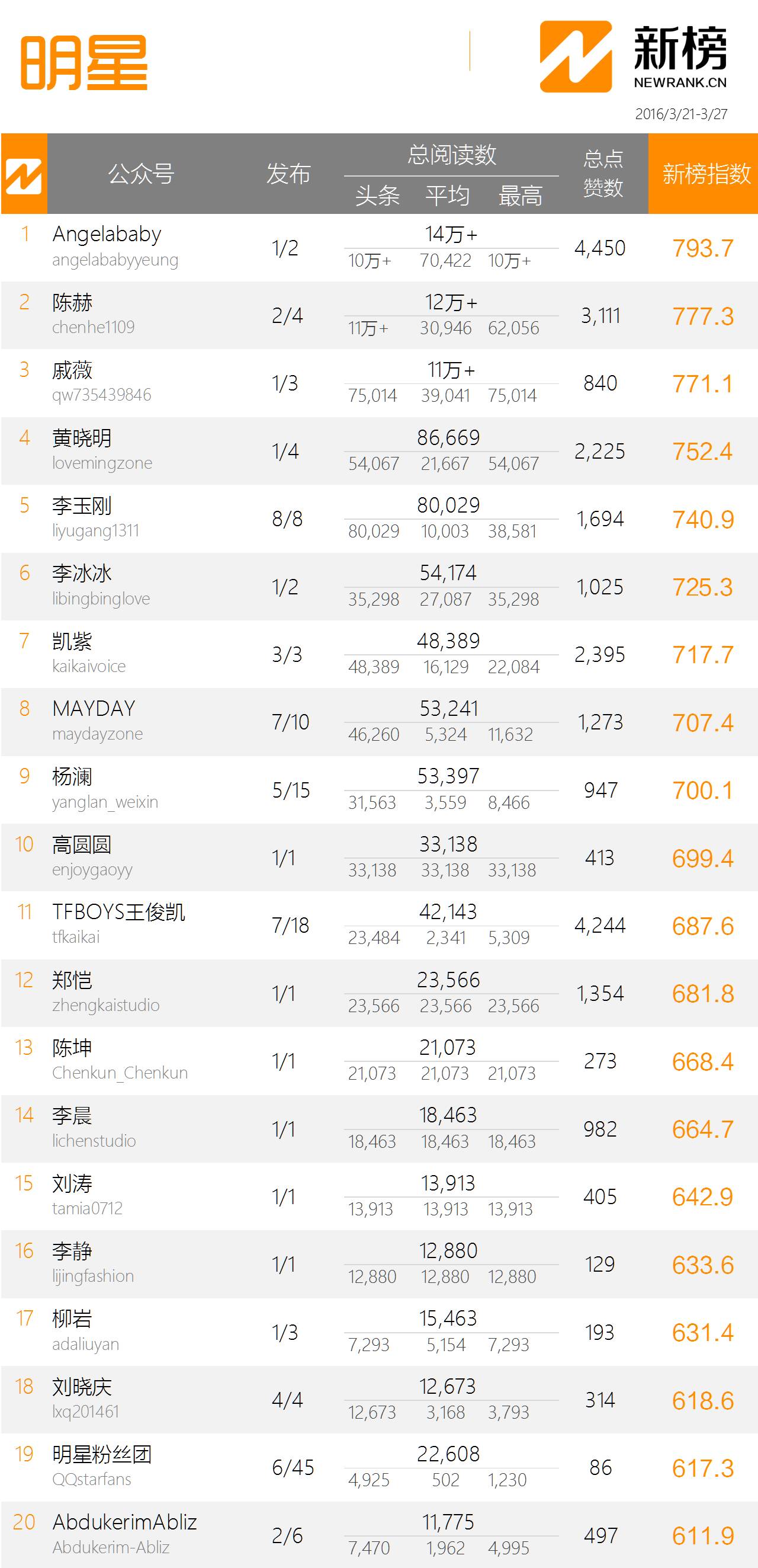 与此同时,小花旦戚薇拿下第三位,女神李冰冰、高圆圆榜单名次都有所退步,黄晓明、陈赫稳步上升。下周谁将能继续笑傲榜单呢?让我们拭目以待。