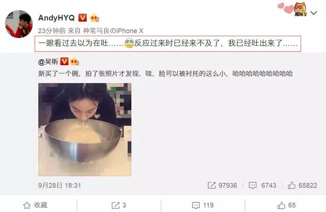吴昕晒自拍说这样吃饭显脸小,被邓超嘲笑:吐了?