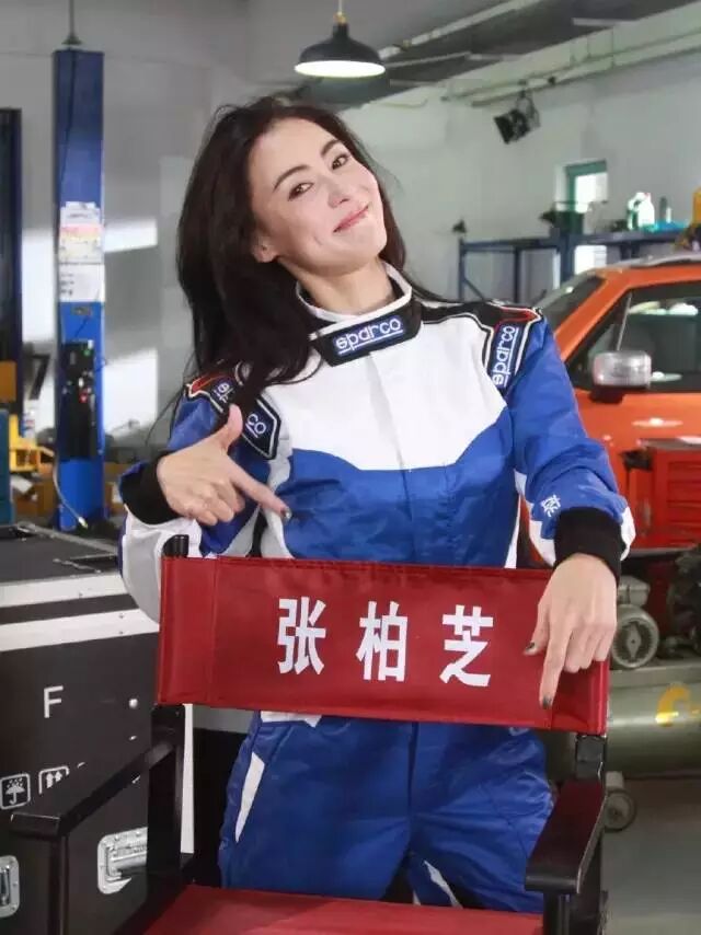 当张柏芝、林志颖两人身穿赛车服并肩走在赛道上