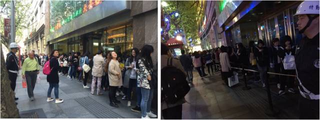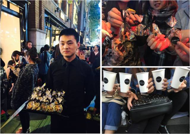 截止至下午2点左右,两地的排队人数均已超过300人,作为主办方,izzue也不得不改变8:30开始排队的计划,早早安排了一米栏,同时开始向现场粉丝提供免费的小鹿饼干及各类饮料。
