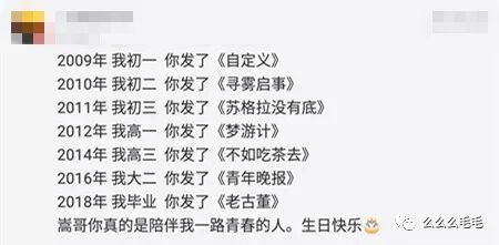 《情侣装》《素颜》《玫瑰花的葬礼》《有何不可》《城府》《清明雨上》《断桥残雪》《庐州月》《幻听》《如果当时》《燕归巢》《千古》《山水之间》《惊鸿一面》《摄影艺术》《雅俗共赏》《蝴蝶的时间》《我乐意》《老古董》......每一首歌都充满着回忆,每一首歌都蕴含着对应的道理,每一首歌都是我青春的见证,11年。以后的每一个11年,依然爱你,依然做只只属于你的嵩鼠。