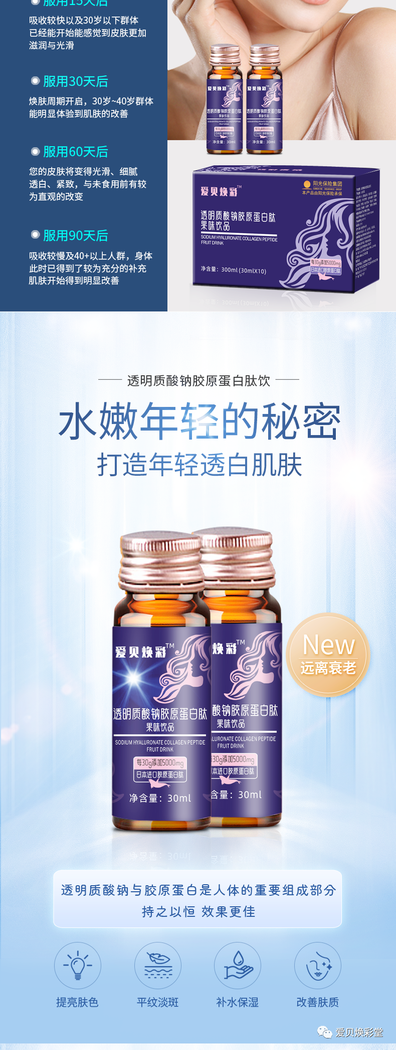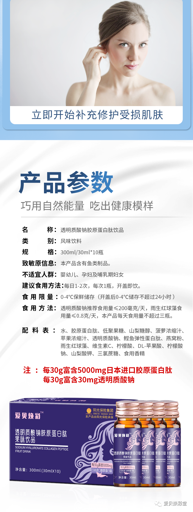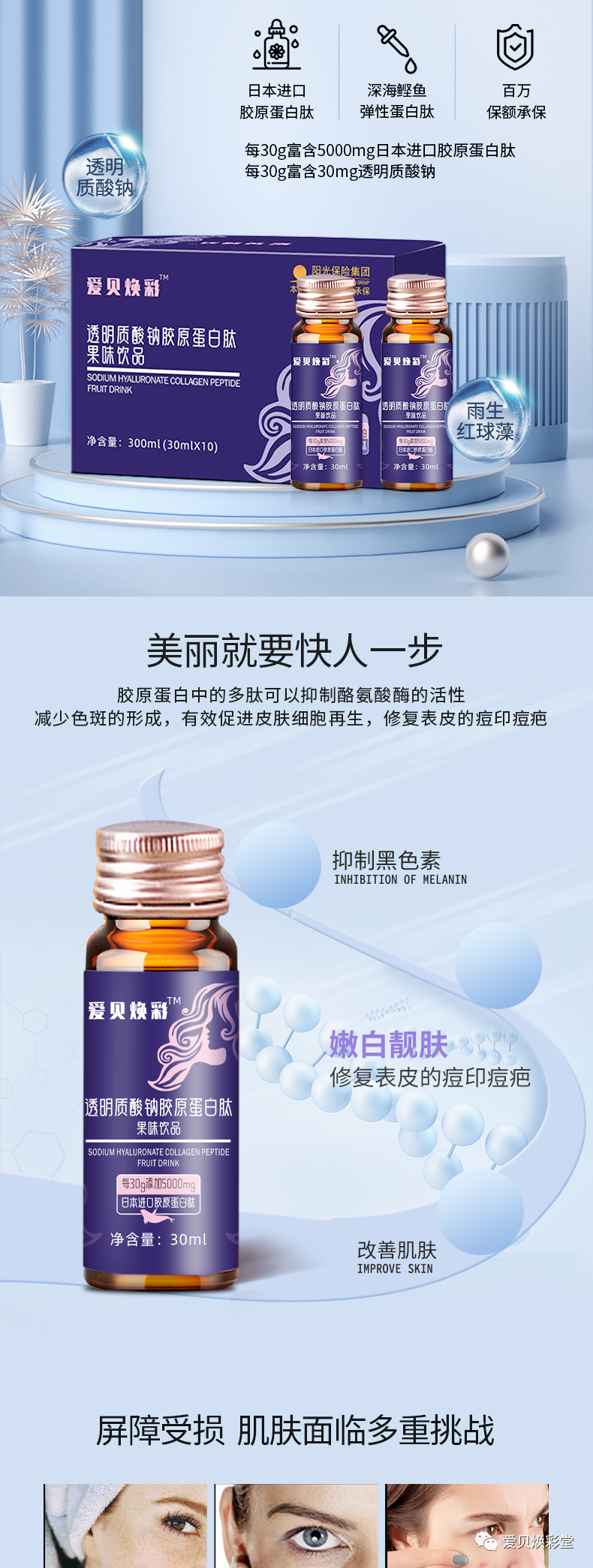 每天1-2支爱贝焕彩透明质酸胶原蛋白肽,随身携带,拧盖即喝,轻轻松松补充玻璃酸胶原蛋白补。