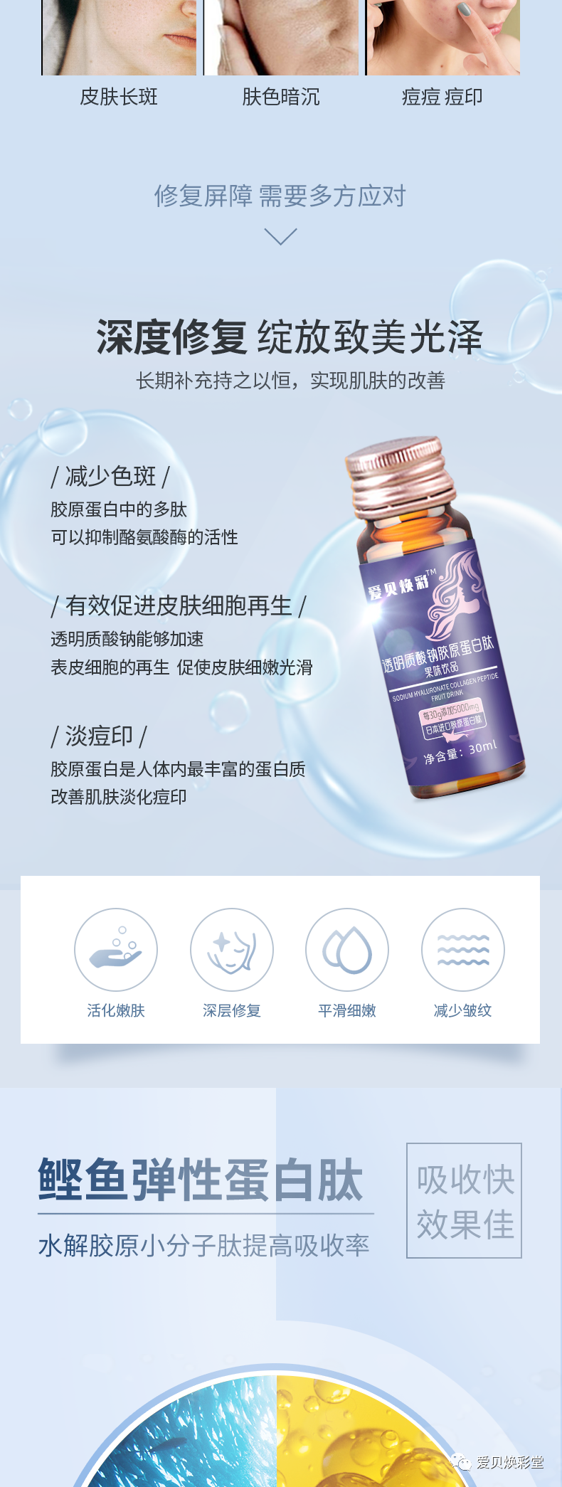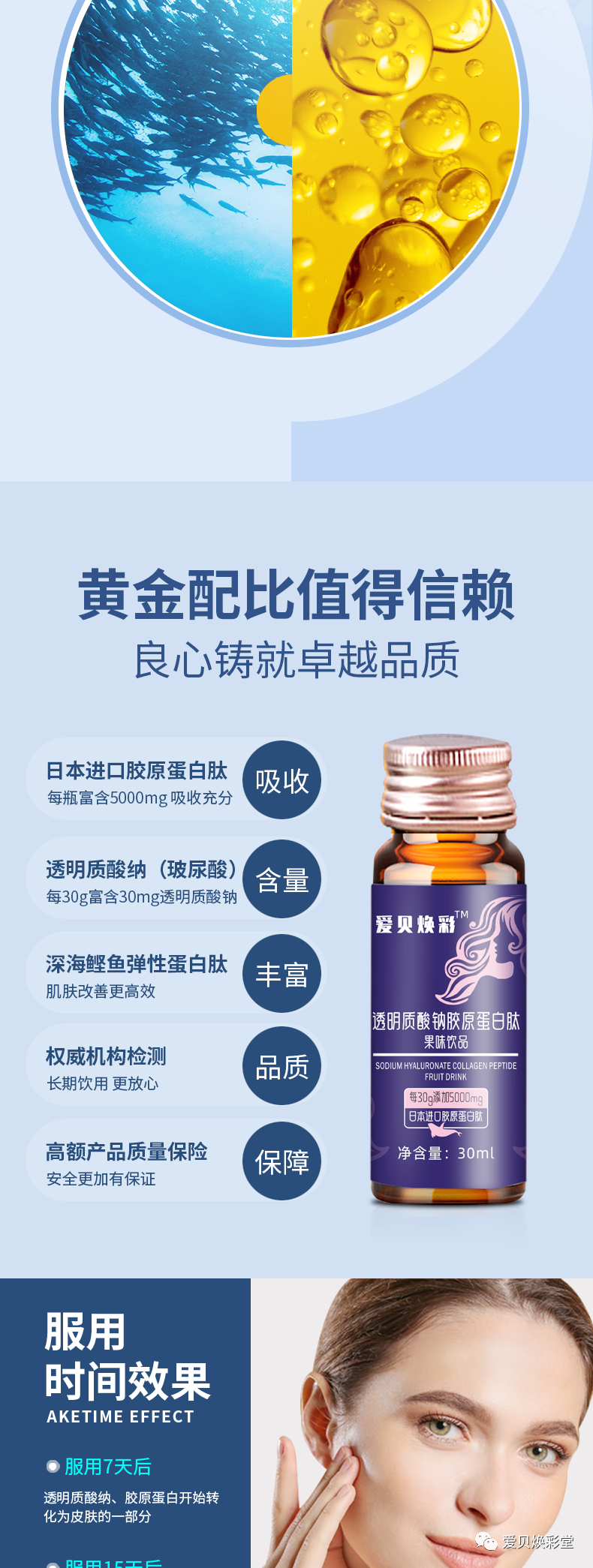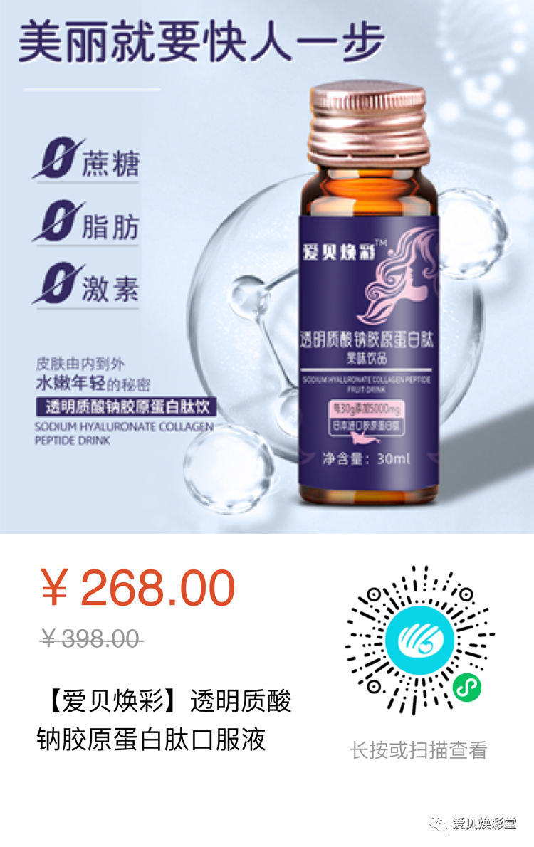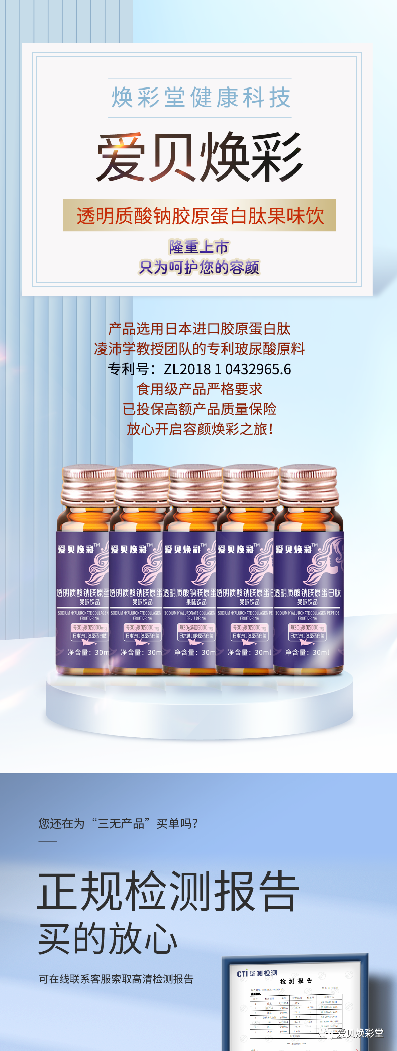 每天1-2支爱贝焕彩透明质酸胶原蛋白肽,随身携带,拧盖即喝,轻轻松松补充玻璃酸胶原蛋白补。