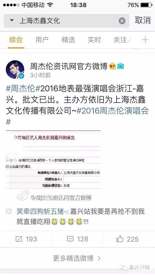 昨天下午15:37周杰伦歌迷网官方微博发了一条信息:
