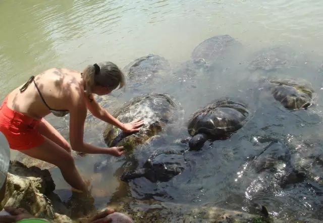 还可以约上朋友一起自费搭乘玻璃底船前往海龟岛, 沿途观赏海底生物, 游览珊瑚礁群,喂鱼, 南湾对岸的海龟岛上有许多海龟、蜥蜴、蝙蝠、巨蟒,可以拍照留念。