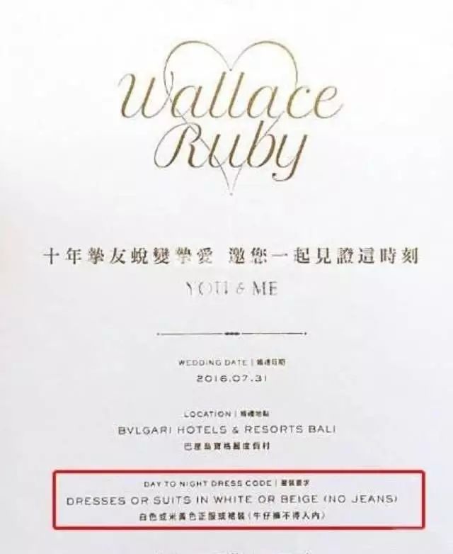 此事源于两大男神女神的喜帖上特意表明了:
