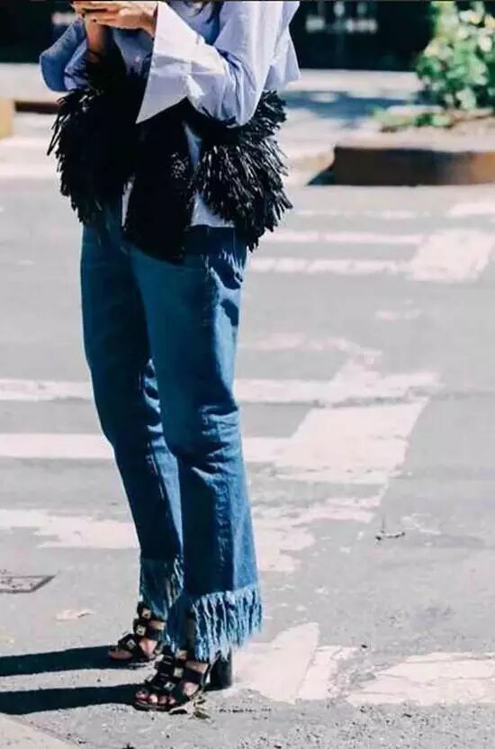 微喇叭裤与这种脱线毛边更是天作之合