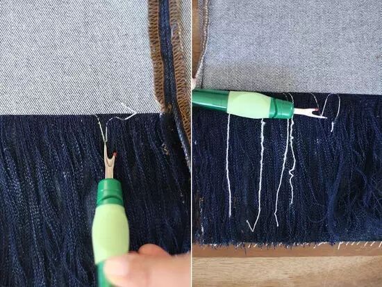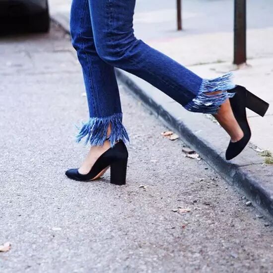 不妨可以尝试这种看似磨损而脱线的牛仔裤。