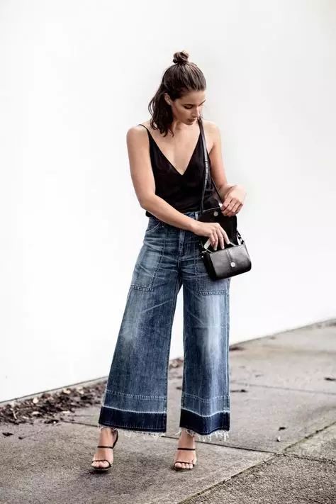 阔腿牛仔裤