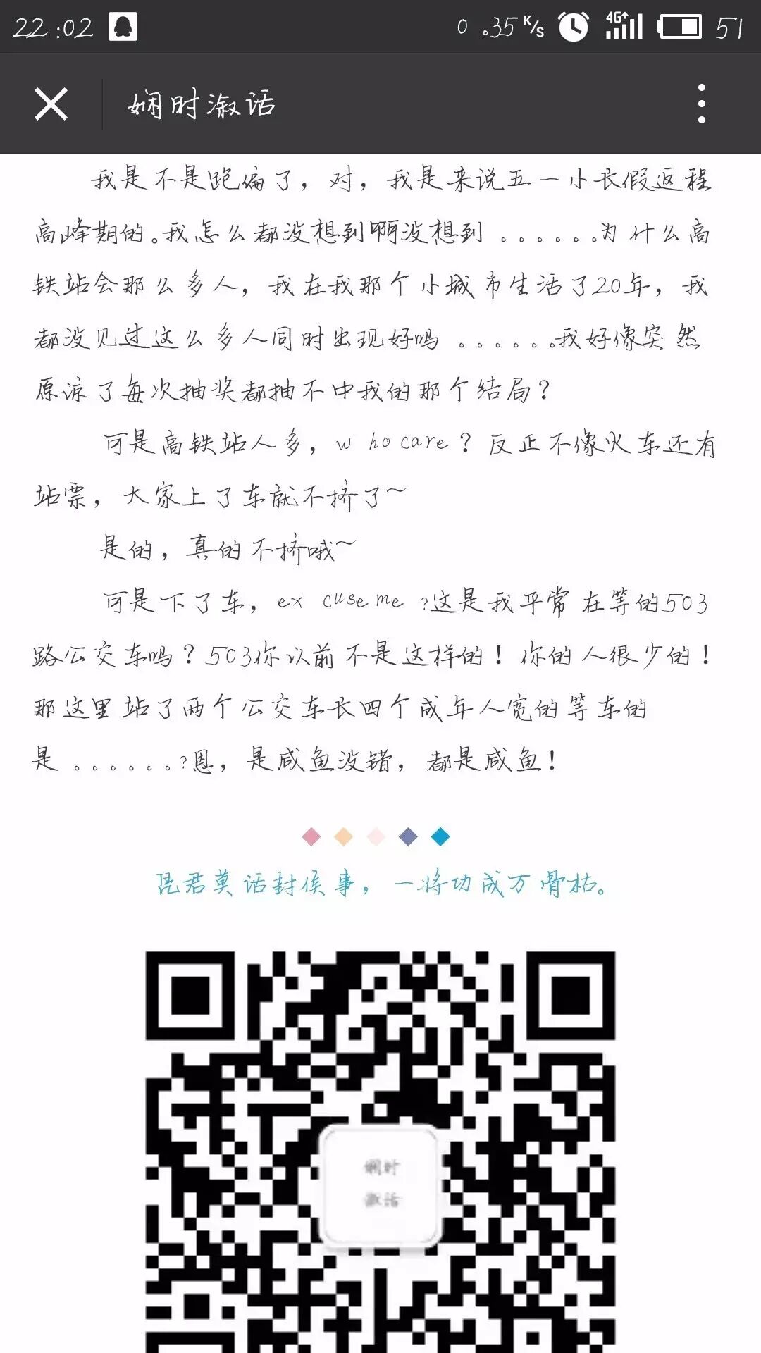 其实我对郭敬明没感觉,那些小文章是我看遍他的《愿风裁尘》,才翻到几篇好的,以后会分享很多人的,以后会越来越像一个正经的上门女婿,不会像现在这样耍流氓(还是你们就喜欢我这种智障一样的公众号?
