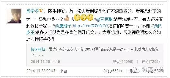 甚至还有还有神网友通过大数据得出“郭敬明的世界里,和他关系最近的人是陈学冬。陈学冬的世界里,和他关系最近的人是郭敬明。”的结论,高手在民间......