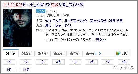 如果不喜欢“土”,不要紧,腾讯视频也有HBO的《权力的游戏》全六季,中英字幕,包爽
