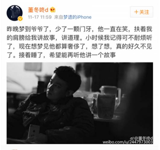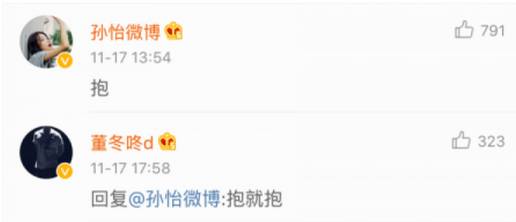 董子健发微博称自己做梦梦到了已经去世的爷爷,言语之间都是对爷爷的缅怀和感伤之情。孙怡也变身暖心小女友回复:抱