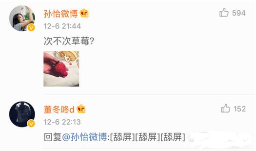 不过,孙怡和董子健在微博的逗比画风可不是一天两天了,而是由来已久。拿最近的来说,孙怡在微博上问大家夜宵一般吃什么,阿美本以为会在微博评论里围观一下我大天朝的美食,但是没想到看到了一个很奇怪的东西!