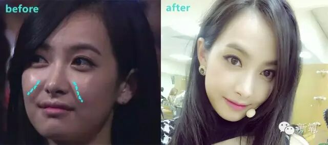 五官方面宋茜的眼睛本来是有细双眼皮的,但并不明显,双眼皮加深后不管是素颜还是妆后都美美哒。
