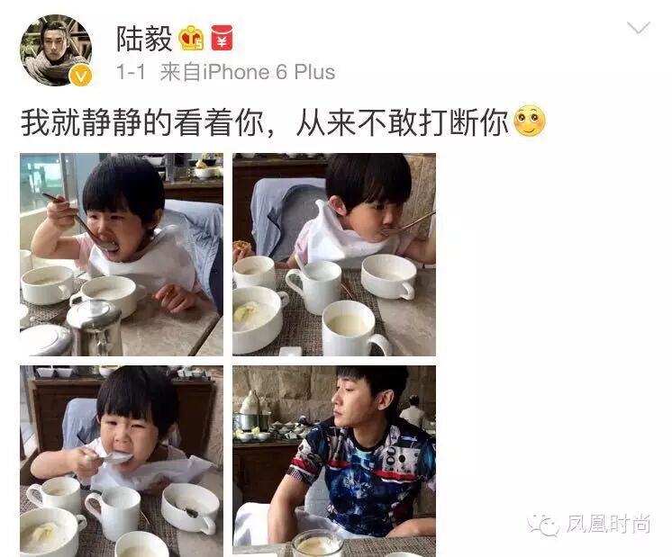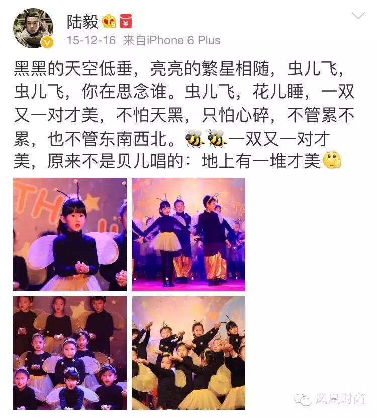 陆毅在微博中晒的最多的就是自己的女儿,有时候不会很多文字或是内容,就是静静拍下她们吃东西或是玩耍的镜头就够了。