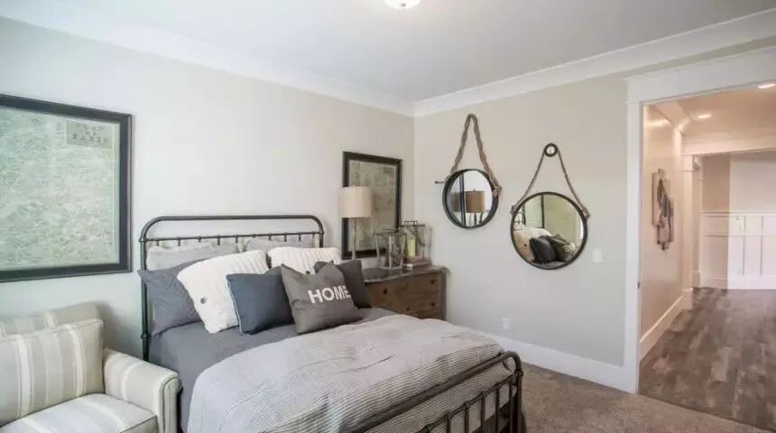 与欧式、中式相比,韩式田园风格的自然设计在卧室更为突出,一张普普通通的双人床,床上挂着两面圆镜,放个床头柜,大功告成。