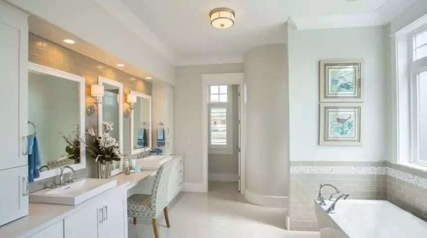 浴室的颜色依旧是浅色系,简单清新的同时,充满了宁静自然之美。