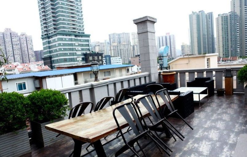 从外表来看,这栋老建筑有些简陋。天台上简单地摆放着古朴的木质茶几,两边是黑色的座椅,可以想象房子的主人经常坐在这里看书喝咖啡。