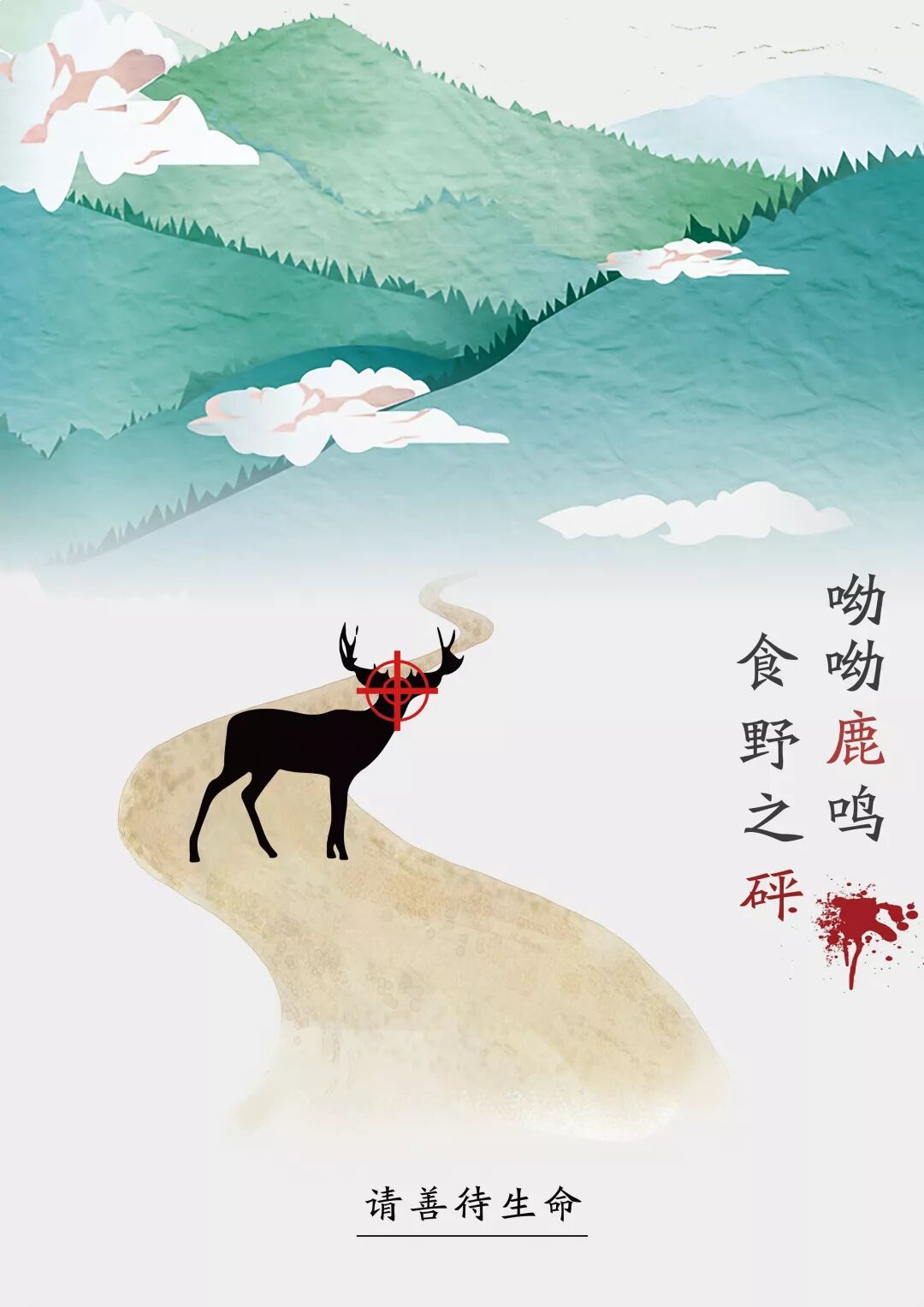 设计理念:滥捕滥杀野生动物一直是一个引发全社会共同关注与谴责的公益热点,在表现保护动物这一热点话题的同时,我们注重与平面插画结合,考虑色彩、选取诗经的诗句糅合、注明广告语等要素,以引发对于保护动物这一主题真实的感受与切身体会。