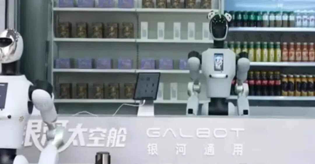 银河太空舱人形智能机器人,可以自主导航,接待顾客,介绍商品。