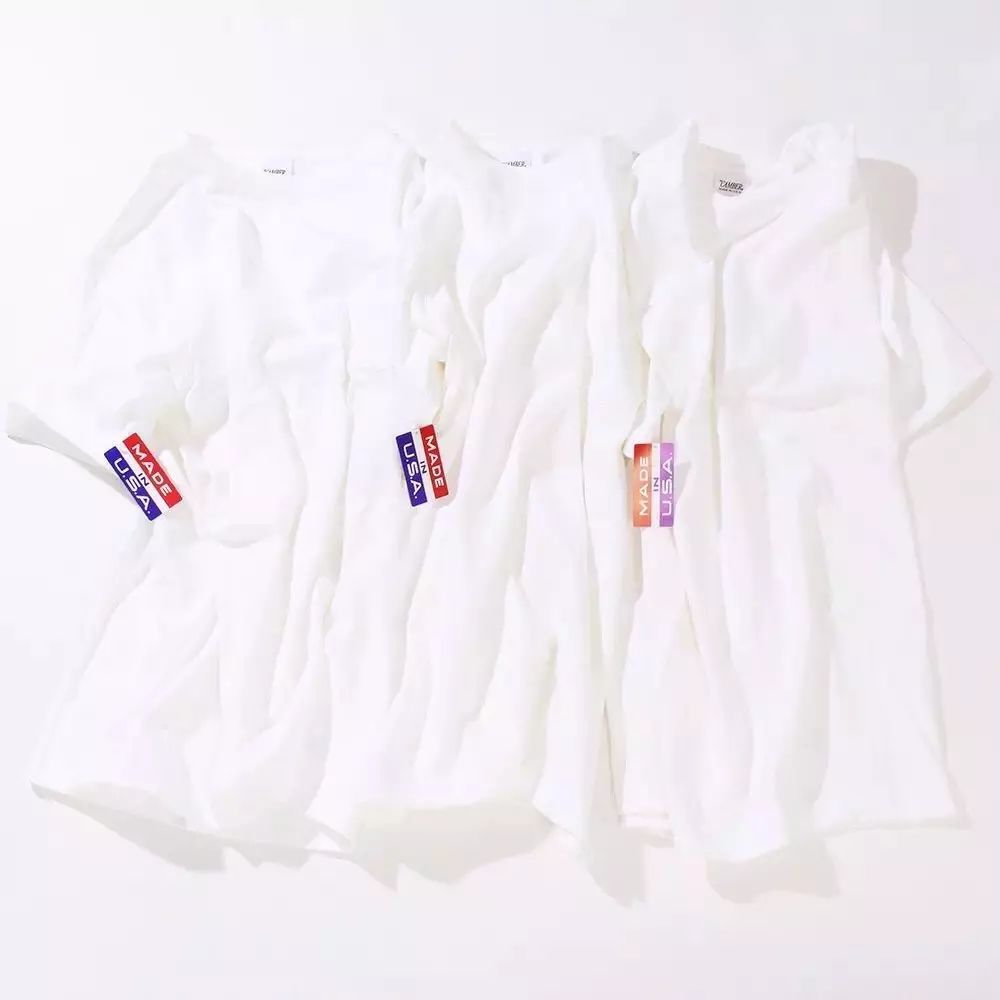 而且他们很厉害的一点在于,做纯色T恤做出了匠人精神,以致于现在很多家潮牌都选用他们的T恤来作为基底,再在上面印花、做设计什么的。