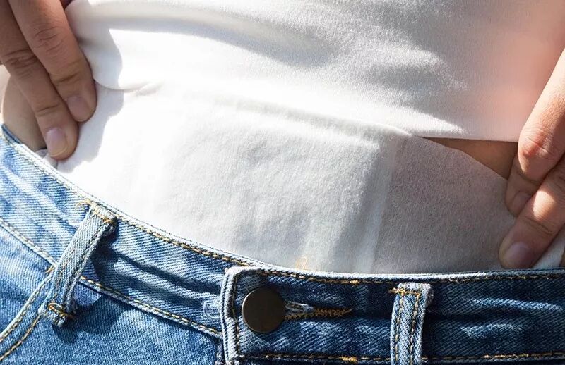 (ps:我们的模特小姐姐因为害羞就隔着衣服试用了暖宫帖)
