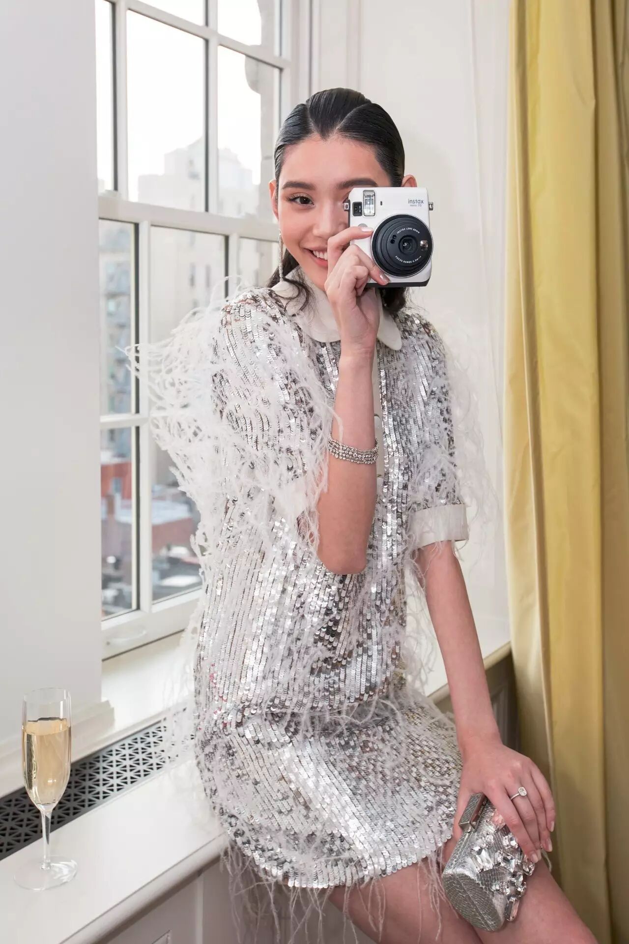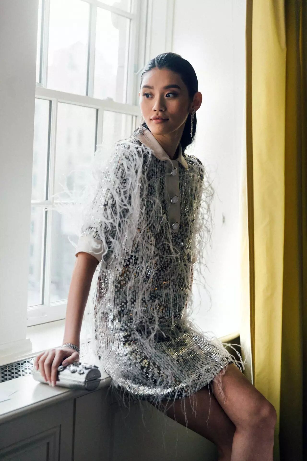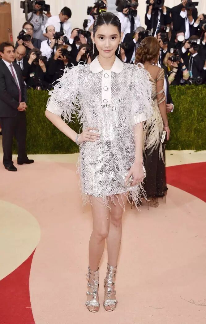 今年的主题是“Manus x Machina”(手作x机器:科技时代的时尚)。奚梦瑶身着Michael Kors为她参与此次活动特别定制的礼服,一袭银色短裙突出未来感和科技感,羽毛流苏的飘逸又带来女性的柔美和手工的精致,完美契合当晚的主题。这件礼服由资深制衣工花费370小时手工制成,白色与银色的亮片叠加打造出斜纹软呢质感,用特殊工艺镶嵌上白色的鸵鸟毛,整条裙子大约使用了4000根鸵鸟毛,打造出飘逸轻盈的效果。