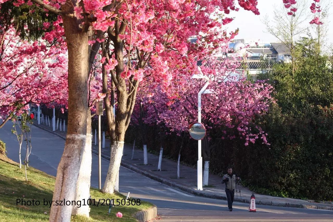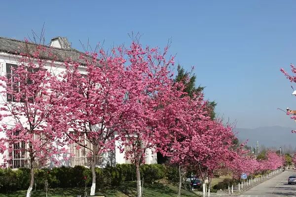 我们常见的是本种的园艺变种重瓣云南樱花,花深粉红色, 重瓣或半重瓣, 花一朵, 直径一厘米,盛花时红花满树,花团锦簇,在树未落时比日本樱花更富观赏性。大理大学的樱花也多是此种。