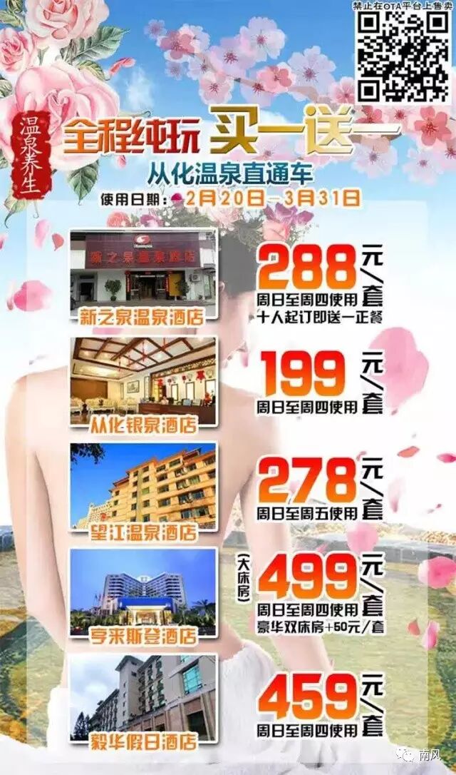 三月春暖花开,女神季南风特价旅游震撼来袭~~~~温泉买一送一,两天游,比如银泉温泉酒店,人均99元!!!!!