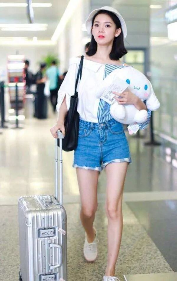 再来看一下这一身机场照,陈瑶就属于脸小骨架大的人,看起来上半身十分精致,到下半身就会感叹为什么腿这么长!这一身条纹衬衫配上一件牛仔裤看起来十分和谐,腿长一米八的既视感纪要出来了,配上一双小白鞋,整个人休闲时尚好看!